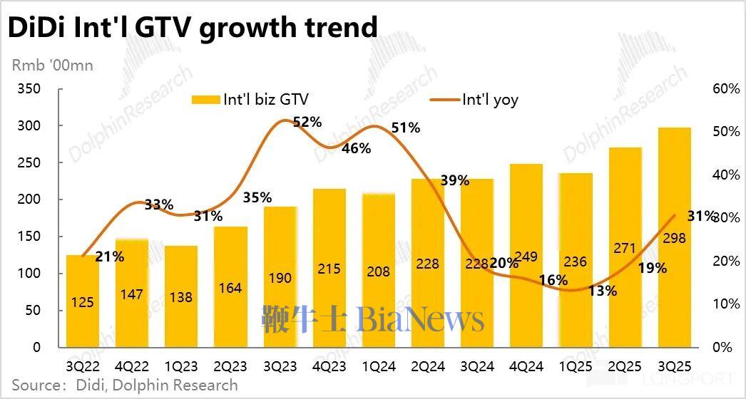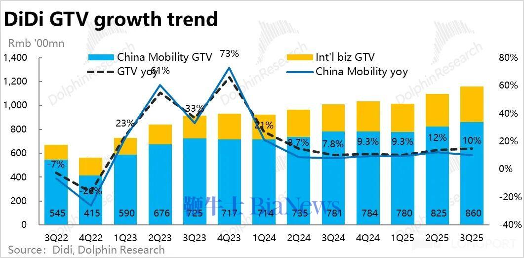 2、海外加速增长:由于滴滴近期重启了在巴西的海外业务(为了抢在 Keeta 入场前夺取先发优势),本季滴滴海外总 GTV 同比增长显著提速到 31%。